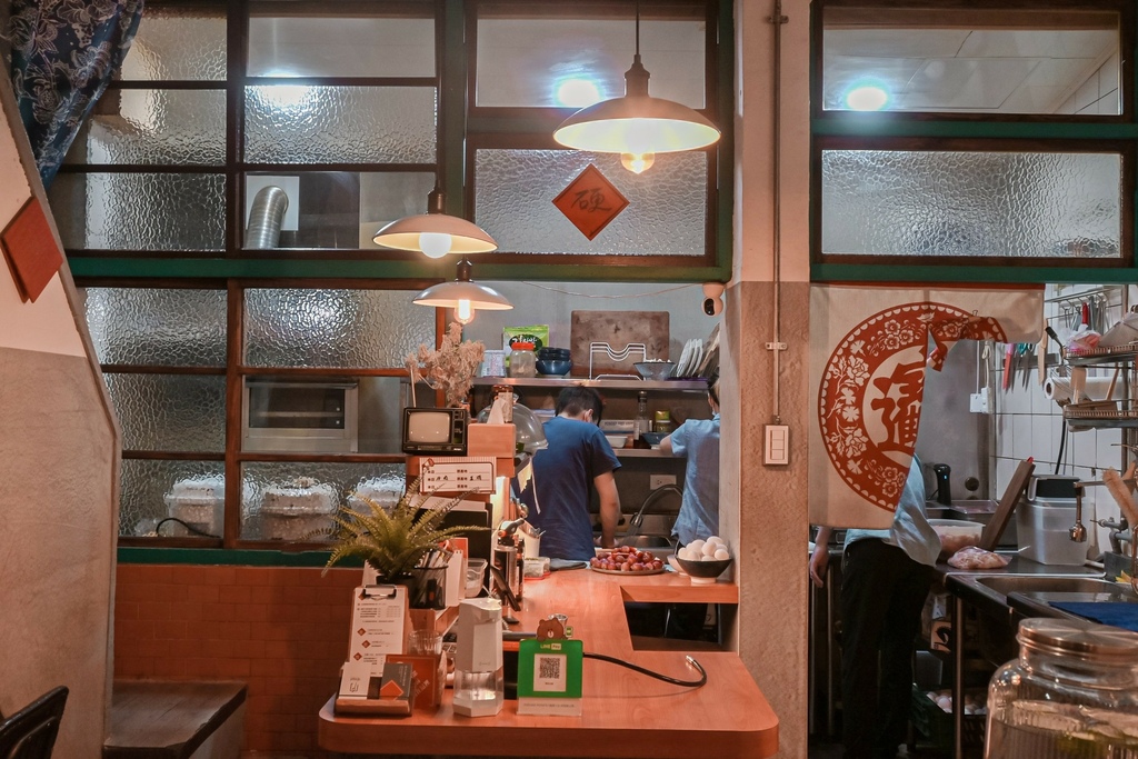 好喜歡小小的店裡滿滿的人聲有著熱鬧的氛圍,裝潢是台式復古風,像是老房子改造的古厝,暖色燈光柔和的相當溫暖。