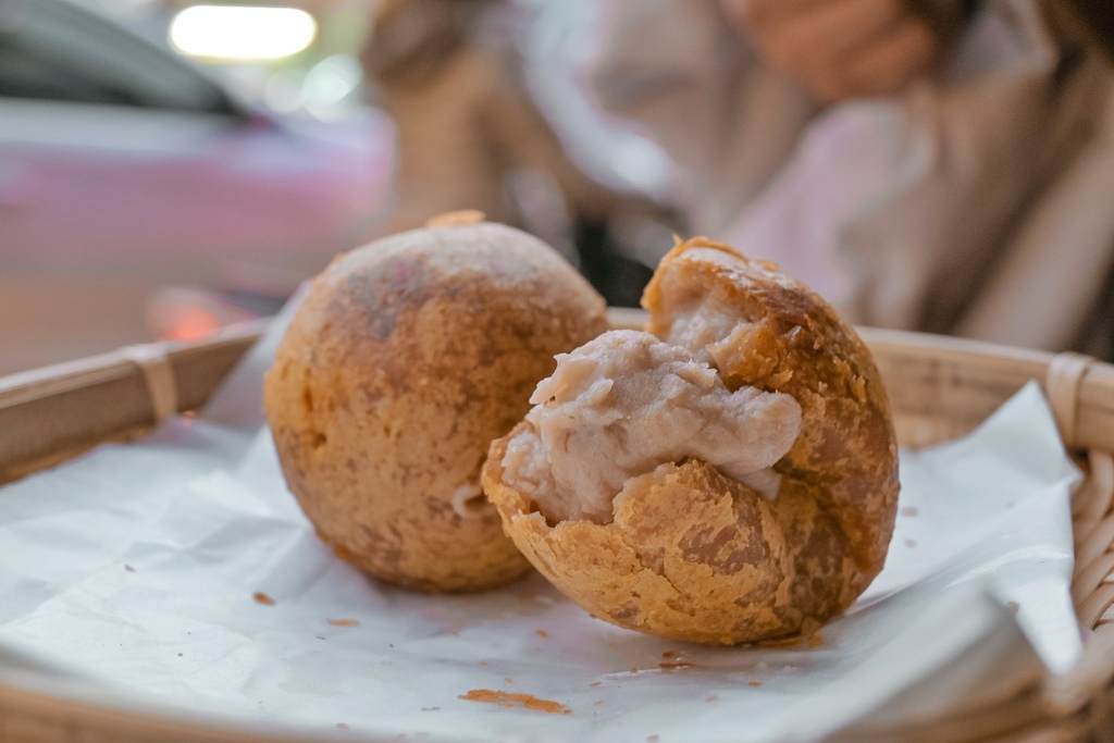 〈林家芋泥球〉是近期許多IG客打卡的美食地標,〈林家芋泥球〉僅販售芋泥球與菱角酥,但〈林家芋泥球〉芋泥球可相當不簡單,超大顆芋泥球都能拿來打棒球的大小,本身是芋頭控怎能不吃,感受超大顆芋泥球的威力。