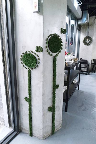 店內呈現極簡風格,已獨特的小巧思運用綠色草皮點綴空間,