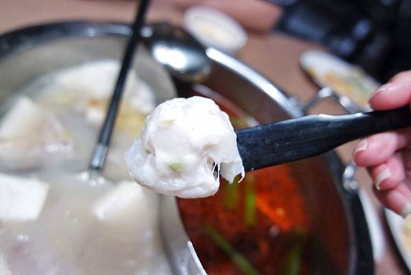 酸菜白肉鍋:內有酸菜、豬肉、豆腐及鴨血,湯頭微微酸,蠻適合涮肉片,口味比較不會那麼重,