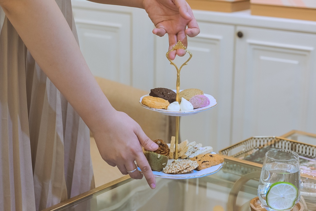 已經去過很多間喜餅店試吃,但還是會被眼前這近似下午茶套餐組合的喜餅給驚豔到,尤其在典雅歐風的環境中體驗,直呼「貴婦下午茶無誤!」
