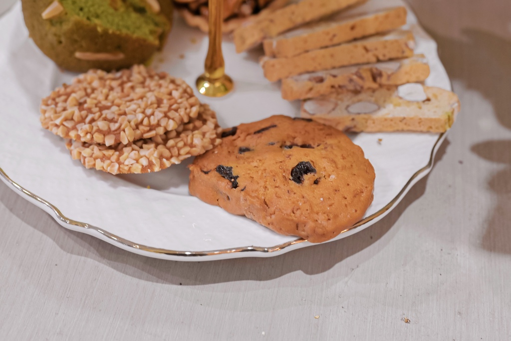 在品嚐完前九款喜餅,來到最後的重頭戲,是口味最甜也最有口感的一款小點心,酥鬆脆口的塔皮上有滿滿的腰果,圍繞著黑糖香,每咬一口濃厚的腰果漫延在嘴裡,甜甜的黑糖在舌尖化開,好酥鬆,堪稱壓箱寶也不為過。