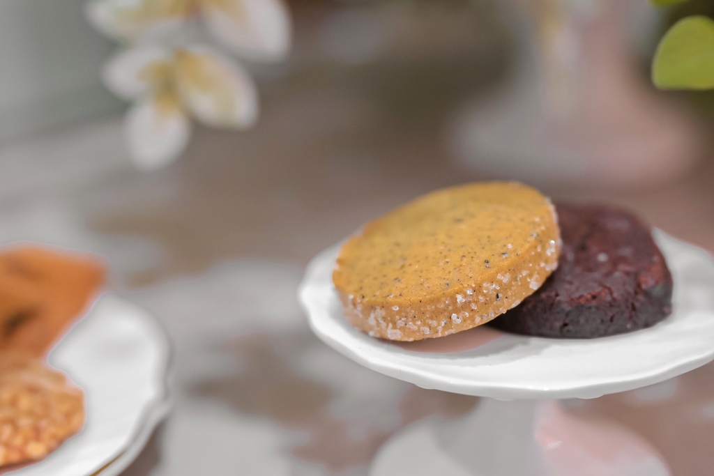 光是餅乾和常溫蛋糕的口味就有30種左右,專員一一介紹,並從中選擇10款進行現場試吃,備有茶水或黑咖啡。