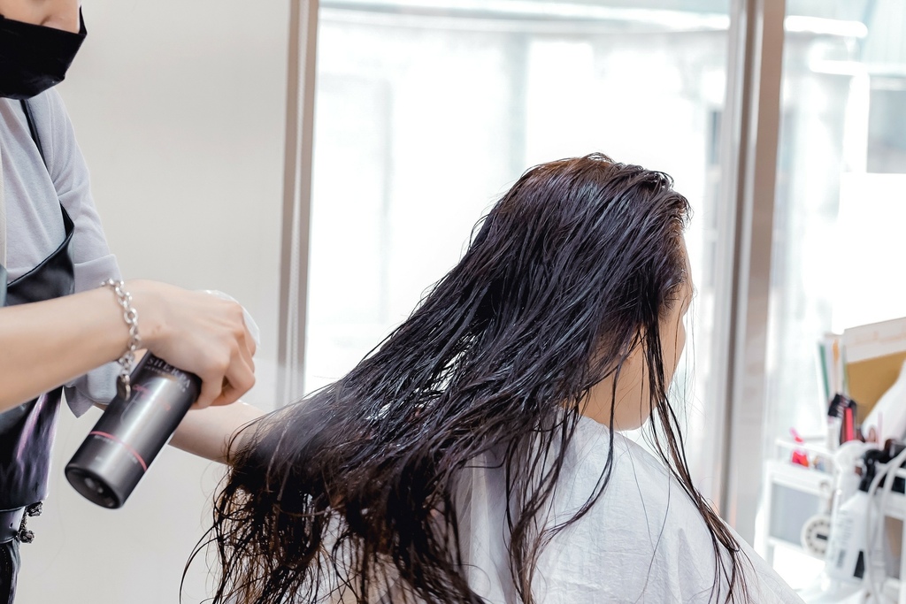 剪髮前先燙前護理使用「SHERPA雪巴噴霧」補充頭髮水分修補受損部份,使頭髮好整理。