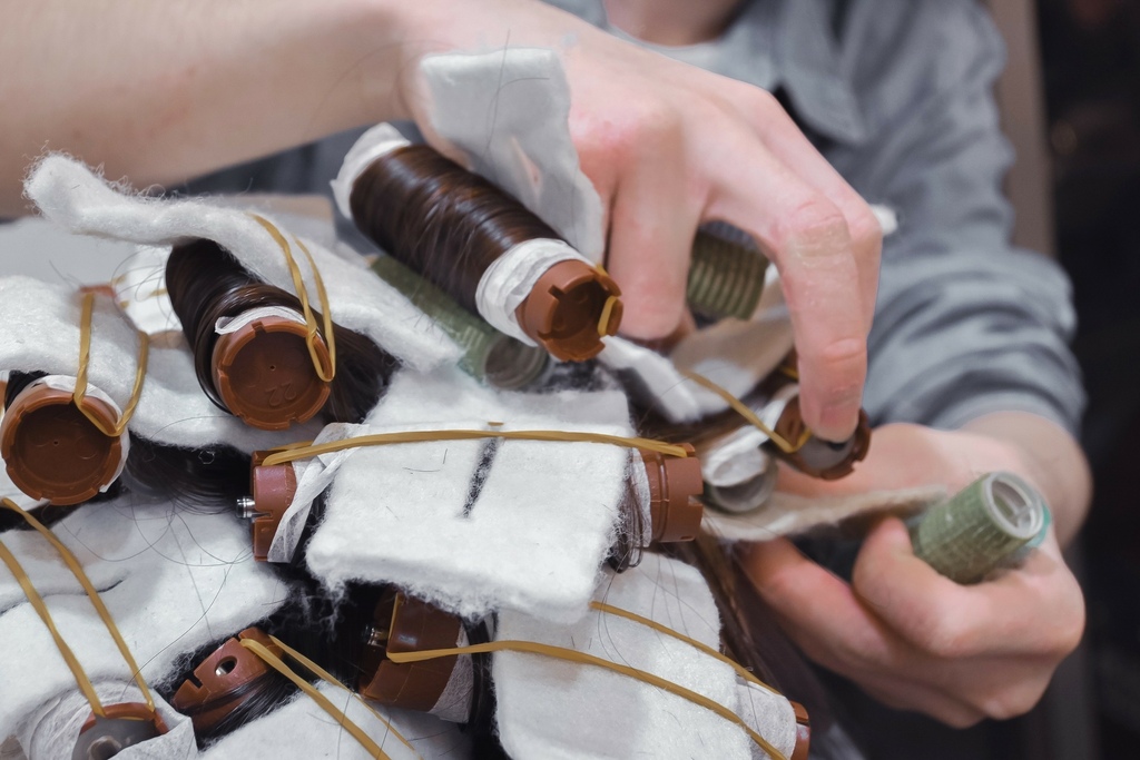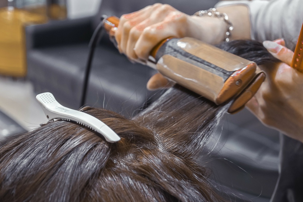 使用溫塑燙,耳朵處開始向下燙捲,貼心將每一捲都仔細分開並多加墊片與髮捲隔離,因為畢竟是120度高溫,避面燙到頭皮。