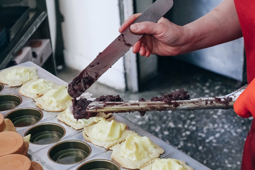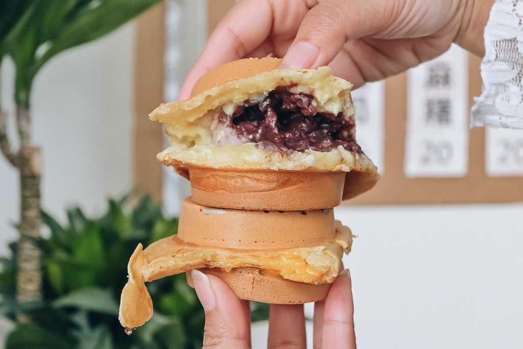 寶寶紅豆餅的餅皮不算是硬脆,偏軟Q,內餡除了招牌上的口味還可以跟闆娘討論特製口味,現場看每顆都爆炸、爆滿的內餡。這是土城在地回憶,也是鹹食過後會想路過買一顆當下午茶小點心的零嘴。