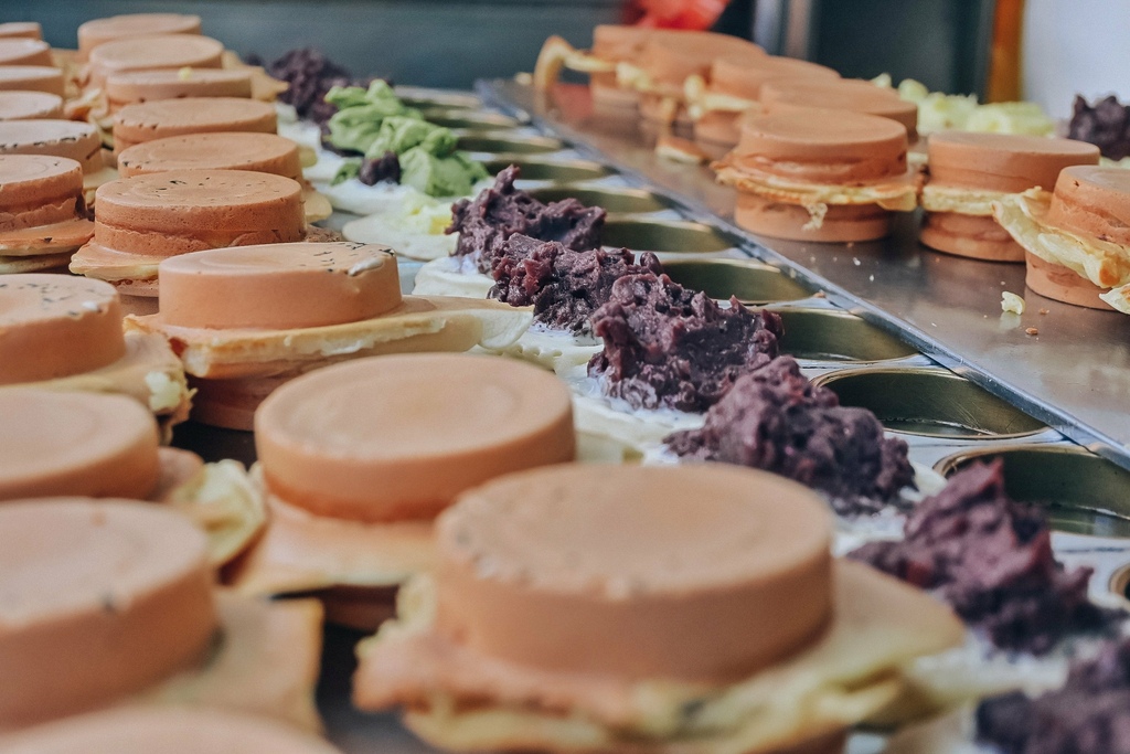 現場製作也太療癒了,餡料都給得很澎派,口味又很多種,人多時還會有兩台爐子輪著做車輪餅,所以不會等待太長時間。