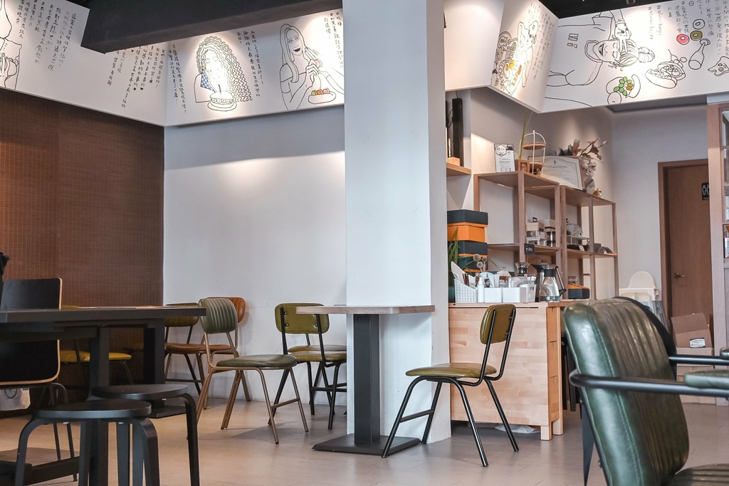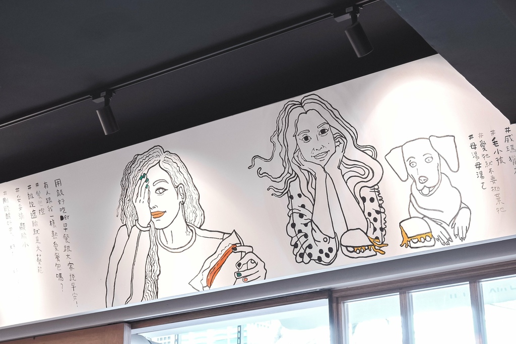 Minami光波的空間很寬敞,座位數雖不多但不擁擠的空間反而給我能座下來好好用餐的舒適氛圍,走進來我第一眼就愛上牆上手繪的塗鴉,用我們的日常口吻與我們對話,又像是寫日記般的心情筆記,每一處都好有趣,風格相當鮮明。