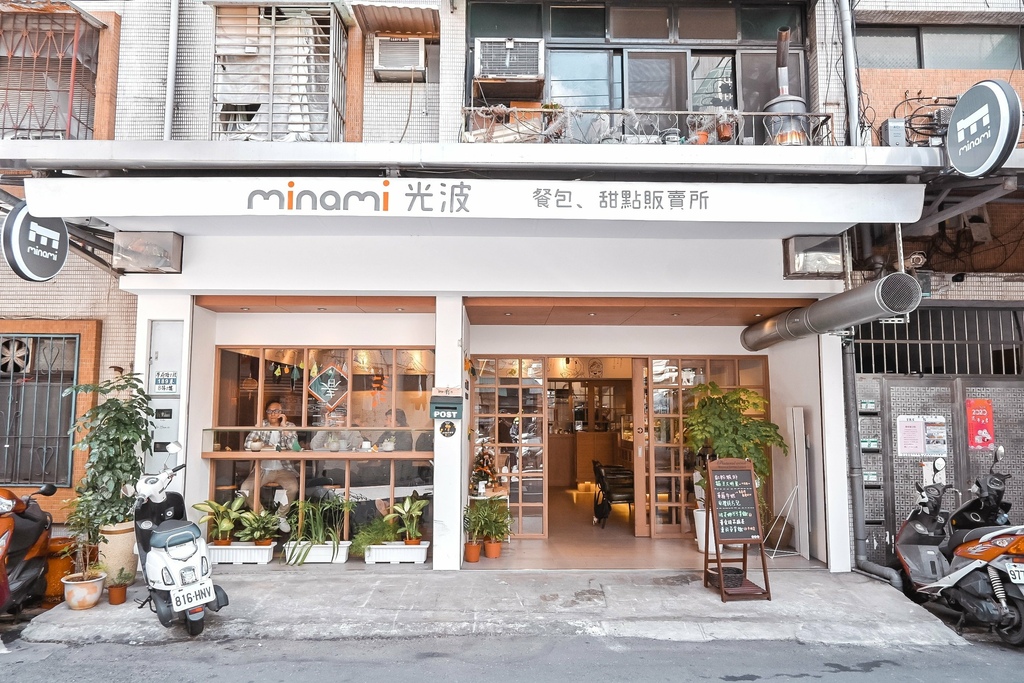 「Minami光波 餐包、甜點販賣所」外觀就是我很喜歡的木質風格還帶有綠色植物裝飾,離海山捷運站步行約6分鐘左右,附近很熱鬧在市場的巷子裡,隔壁就是寶寶紅豆餅。