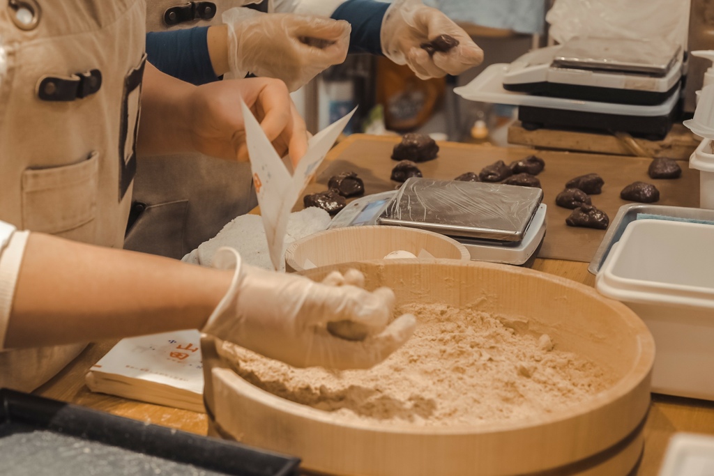 店員每個手速飛快,咻咻咻一個接一個分工合作就包好了,動作非常療癒,像是開了外掛似的,也因為現點現做,需要耐心等候。