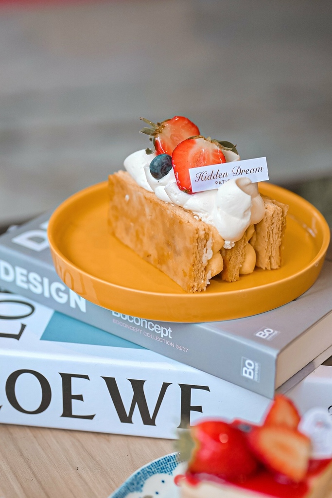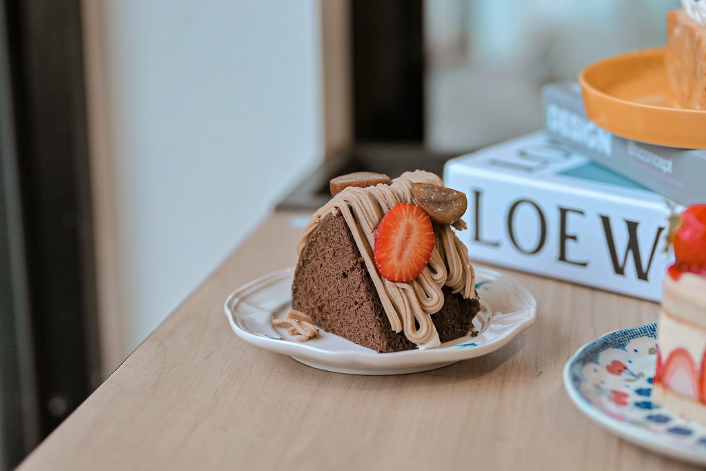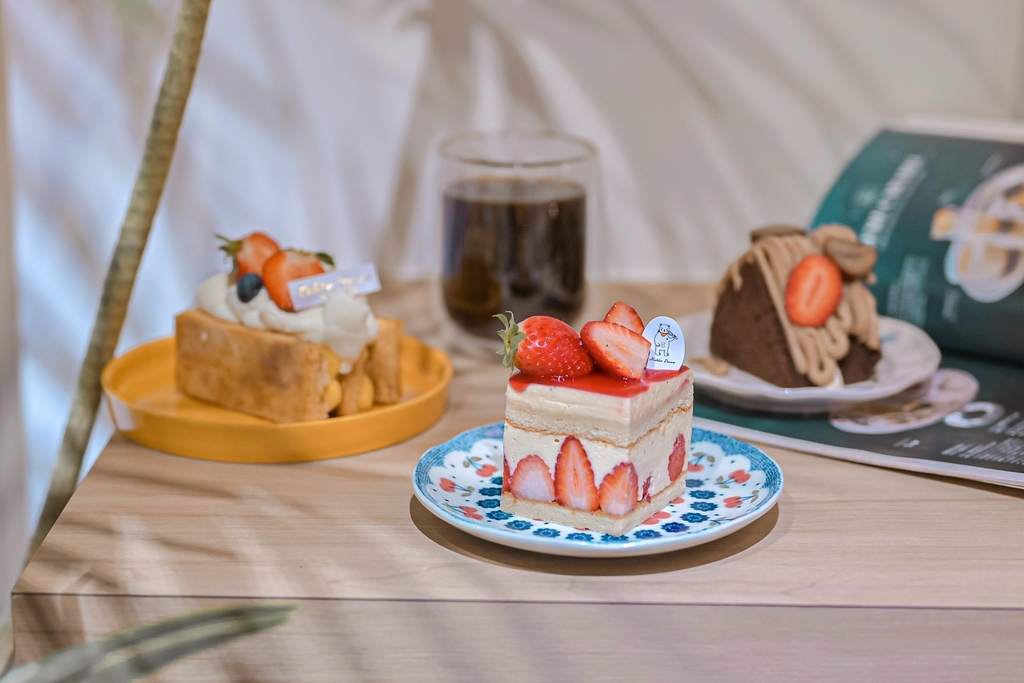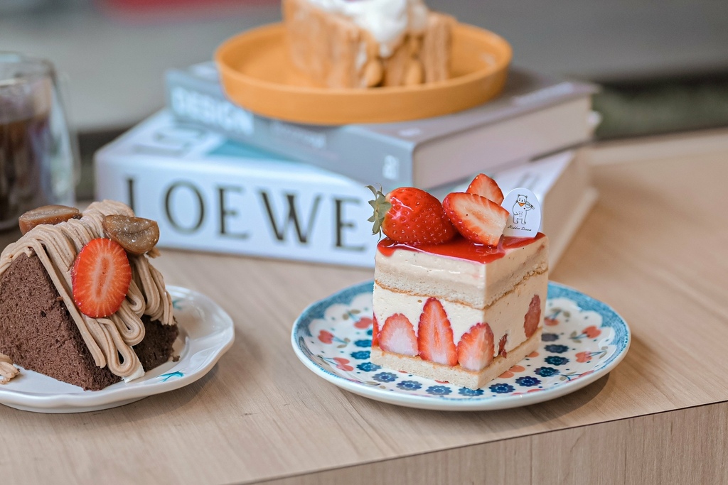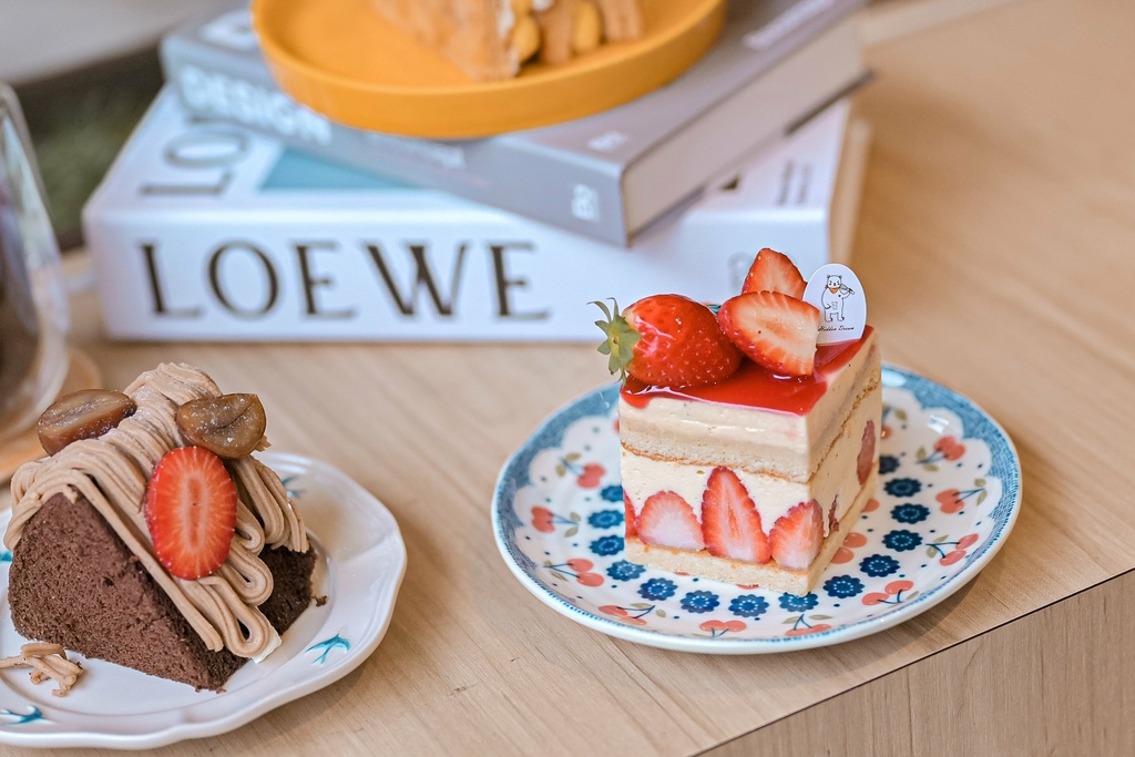 草莓配上香草上士達慕斯與海綿蛋糕很純粹每挖一口都可以吃到草莓的酸甜滋味,整體表現亮眼,是草莓控必點。