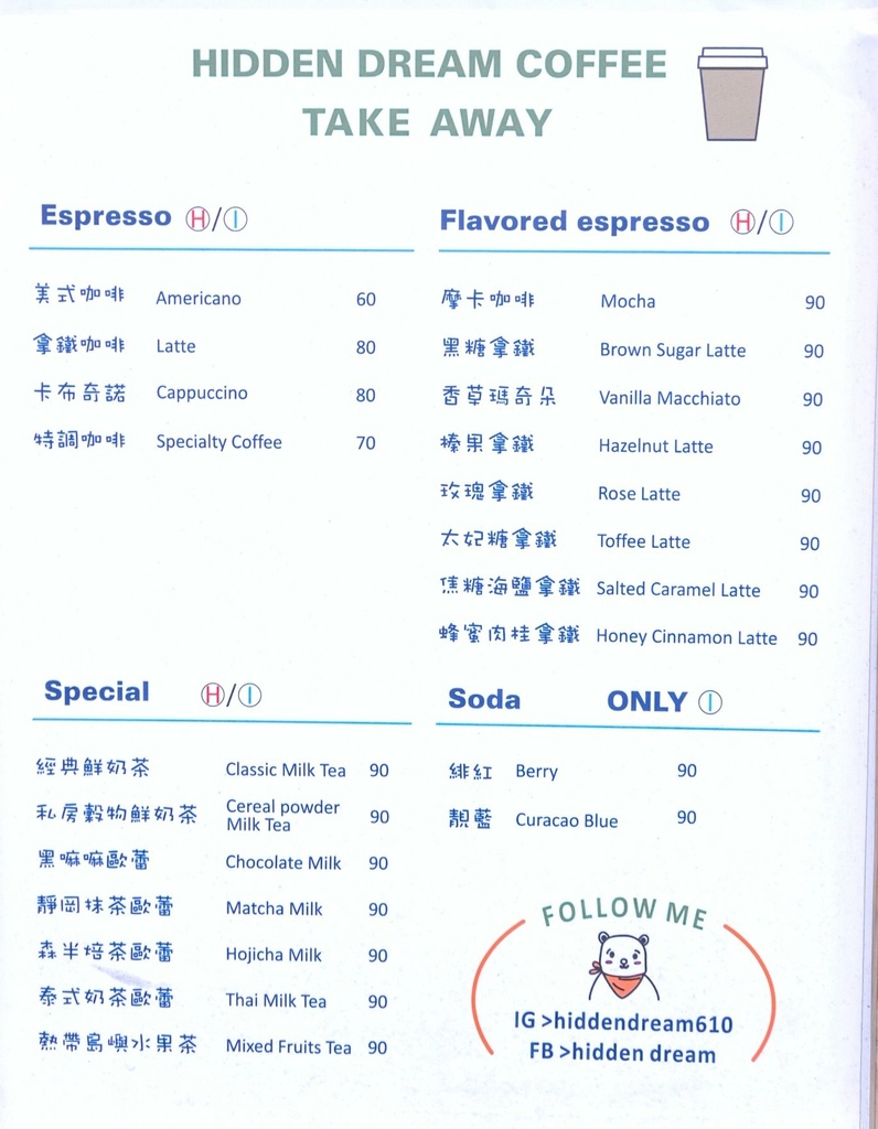 Hidden Dream 嚐夢甜點 低消是一塊蛋糕或一杯飲品,外帶飲品有優惠價。