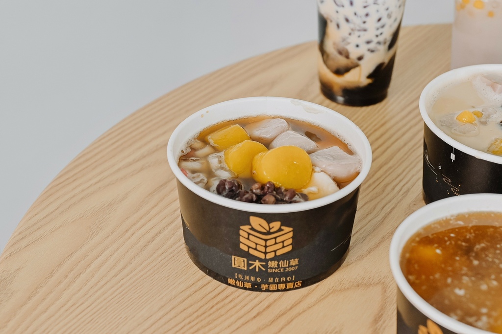 嫩仙草給的份量超多,嫩仙草帶有柴燒香氣,很天然的好滋味,每一口都可以吸到仙草紅豆與鮮奶完美交錯,甜度很剛好不死甜,喜歡有嚼勁的的可以選珍珠或小芋園增加口感也很不錯。