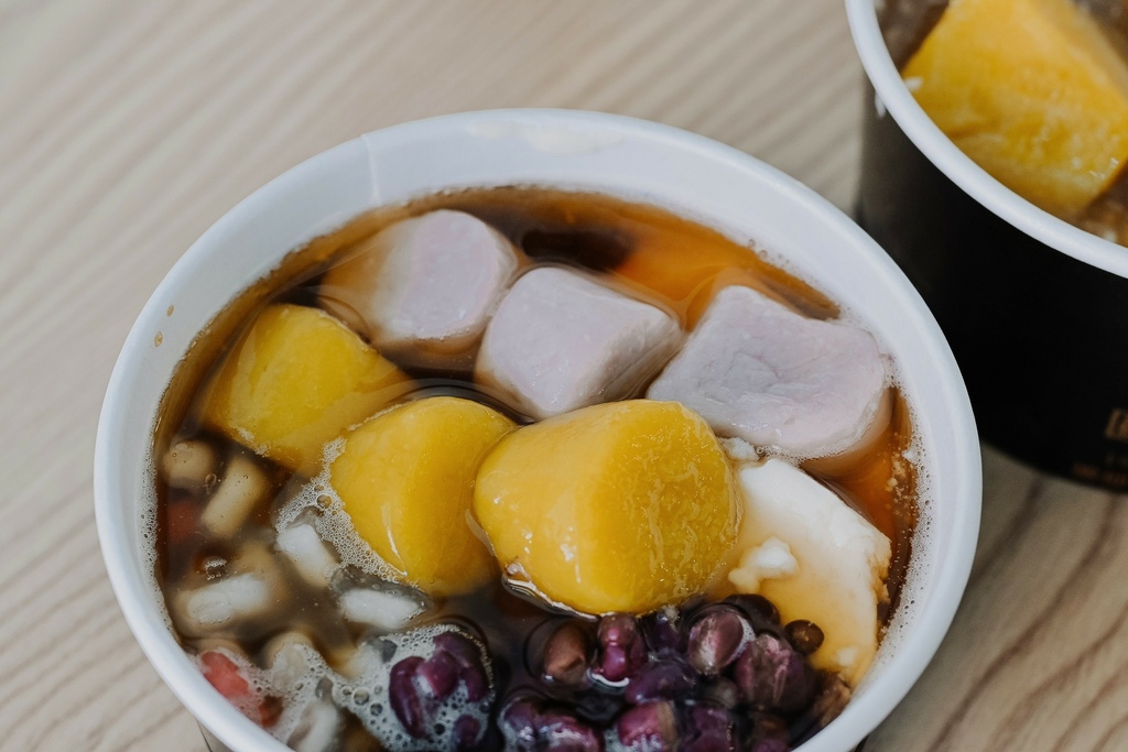 芋圓和地瓜圓看起來就像地瓜和芋頭在碗中,非常有份量,咬起來超有口感,一碗入肚絕對會超飽。