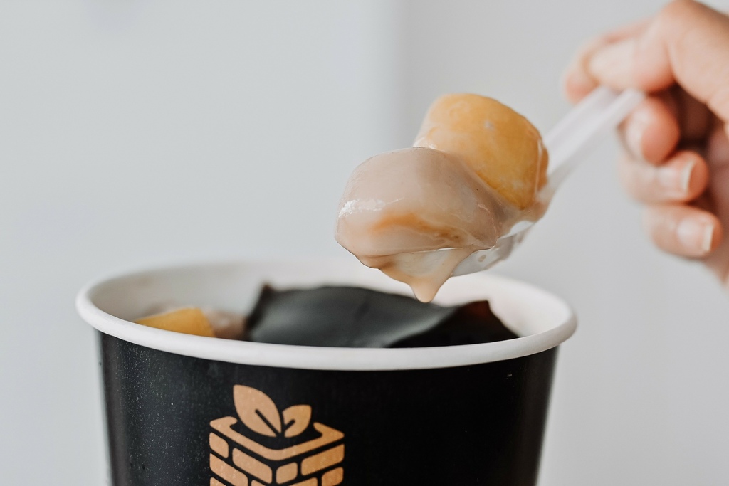 手工地瓜圓、手工芋圓size超大,一個湯匙都裝不太下,沉甸甸很有重量,咬起來也很費力,像在咬口香糖一樣很有Q勁,感覺咬上5-10分鐘都不是問題,又大顆又Q,塞滿口腔的豐富感太過癮了!