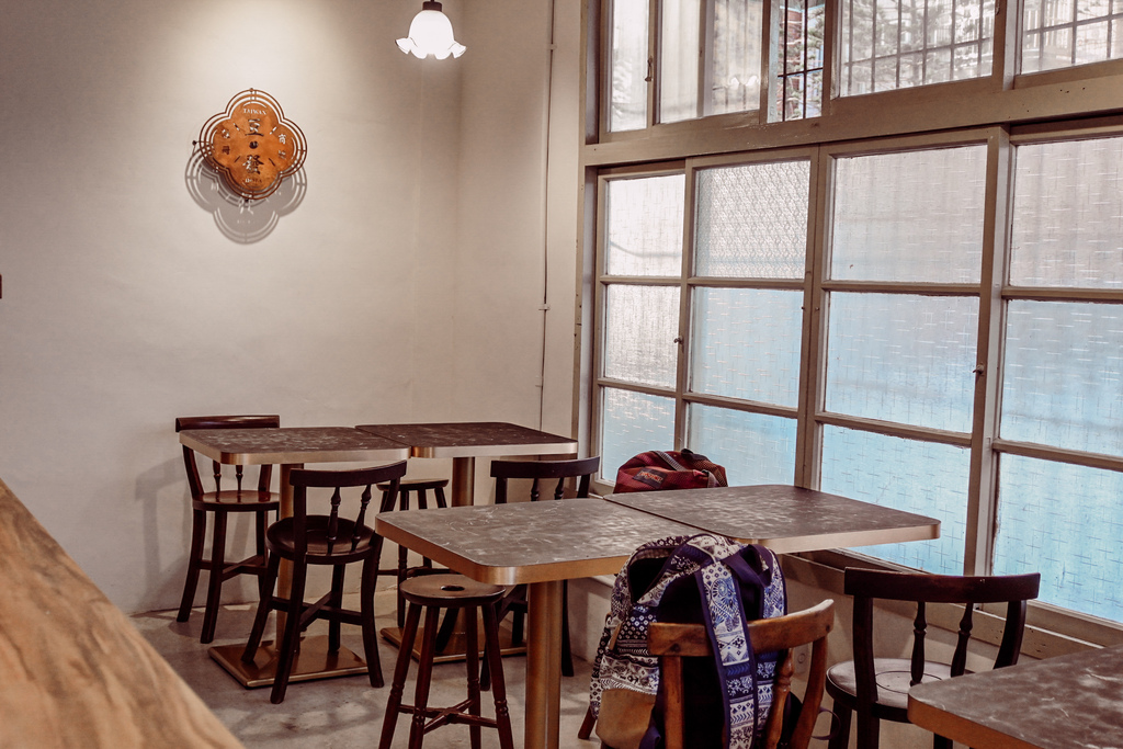 入內驚喜連連,老屋氣息濃厚,有我愛的舊花窗、藥櫃。位子頗多,當天平日去沒什麼客人,特別安靜,給我們很愜意的空間。