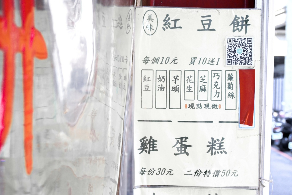 各款紅豆餅一個販售10元,買10送一,價格還算便宜。