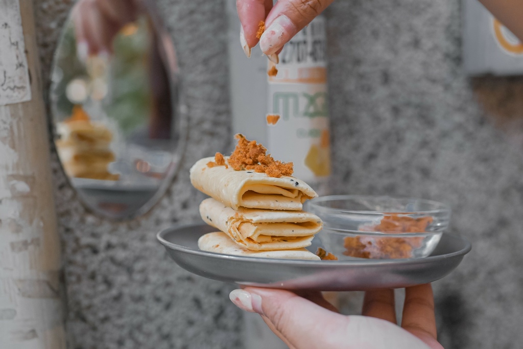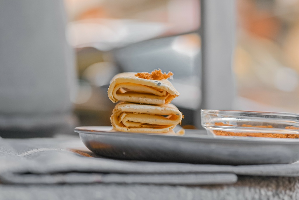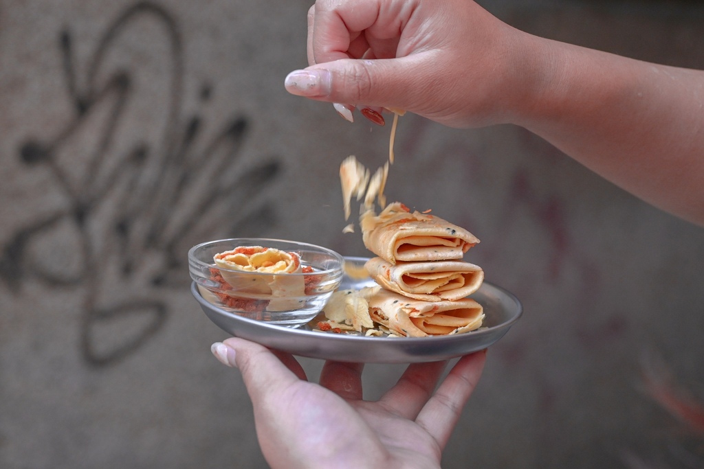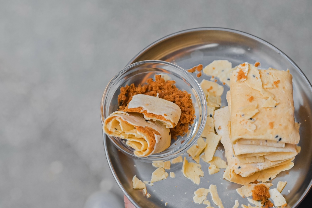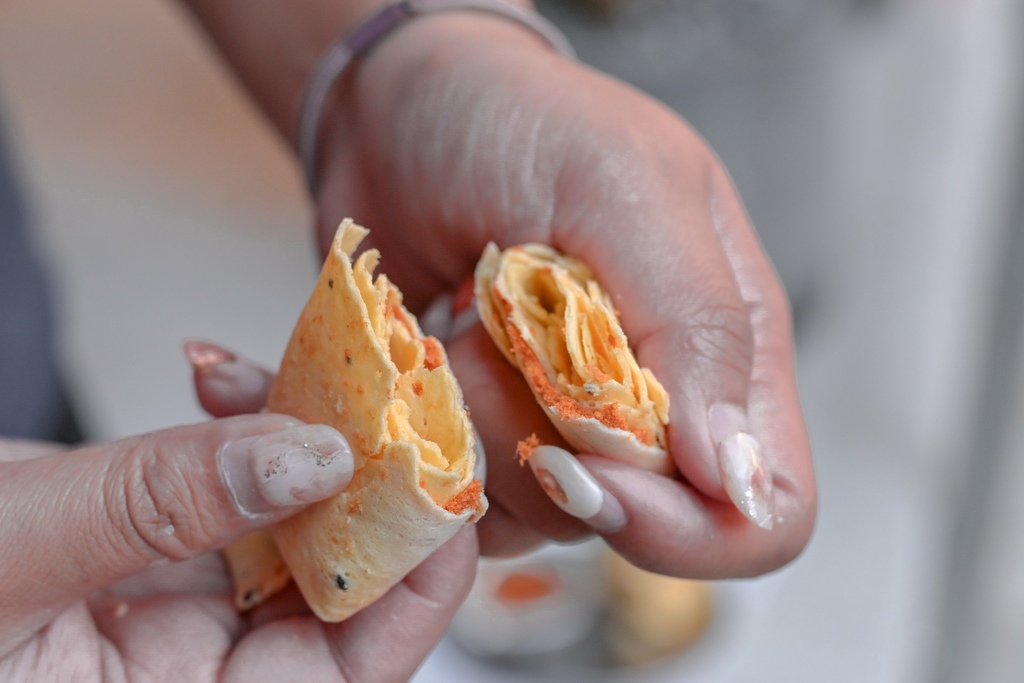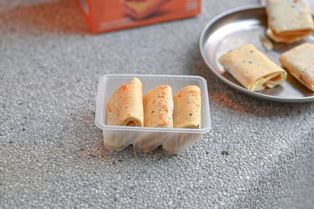 輕輕一撥蛋捲噴飛,內裡藏的肉鬆圍繞著蛋捲,層層夾著有一定比例的肉鬆,每咬一口都可以吃到肉鬆與蛋捲完美比例在嘴中,但又不會乾口,酥酥脆脆的,小朋友一定很愛。