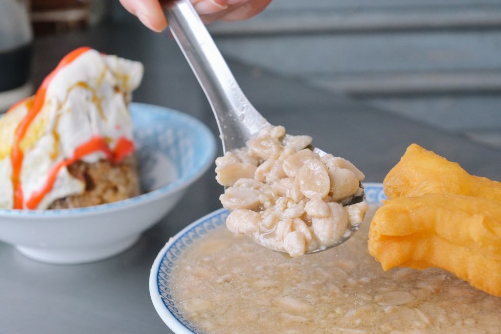 油條配花生湯是每桌必點,堪稱招牌中的招牌。花生口感軟爛在嘴中就化了開來,可見煮得很久,湯汁香甜、花生綿香,兩人喝一碗剛剛好。