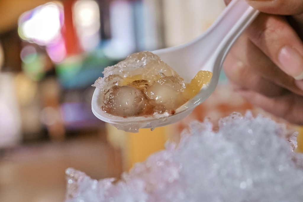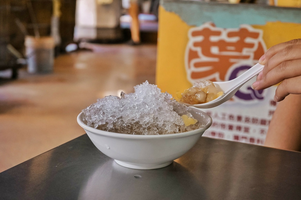 綜合粉圓冰有紅豆、綠豆、鳳梨與粉圓,配在一起料多實在吃多也不膩,粉圓和波霸粉圓一樣大小,口感Q彈,糖水有香蕉水香氣,是很傳統的古早味,令人懷念的老滋味,兩人一起吃恰恰好回憶小時候的老味道。